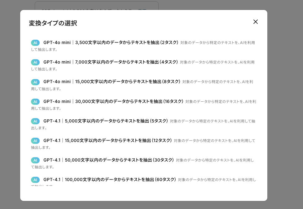 ・OCRまたは音声を文字起こしするAIオペレーションはチームプラン・サクセスプランでのみご利用いただける機能となっております。フリープラン・ミニプランの場合は設定しているフローボットのオペレーションはエラーとなりますので、ご注意ください。