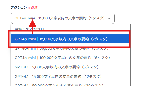要約する際に使用するGPTの種類と、最大文字数を運用に合わせて任意で選択してください。