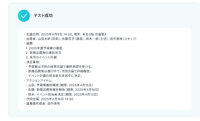 グローバルなチームで働く際、言語の違いはコミュニケーションの障壁になりがちですが、このフローによってAIが自動で翻訳処理を行うため、言語の壁を感じることなく、スムーズで迅速な意思疎通が可能になります。