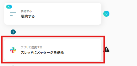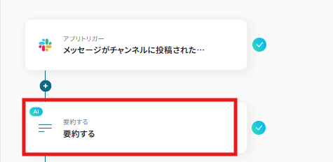 今回のテンプレートでは、下記画像の通りSlackに投稿されたメッセージ内容を自動で要約できるように設定されているので、このまま先に進みます。