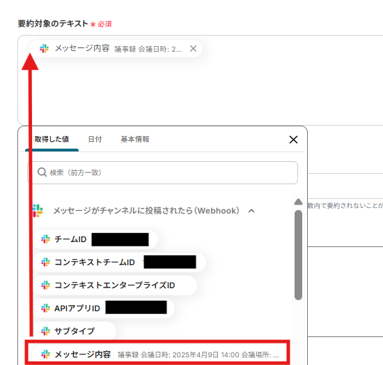 続いて、要約対象のテキストを設定します。