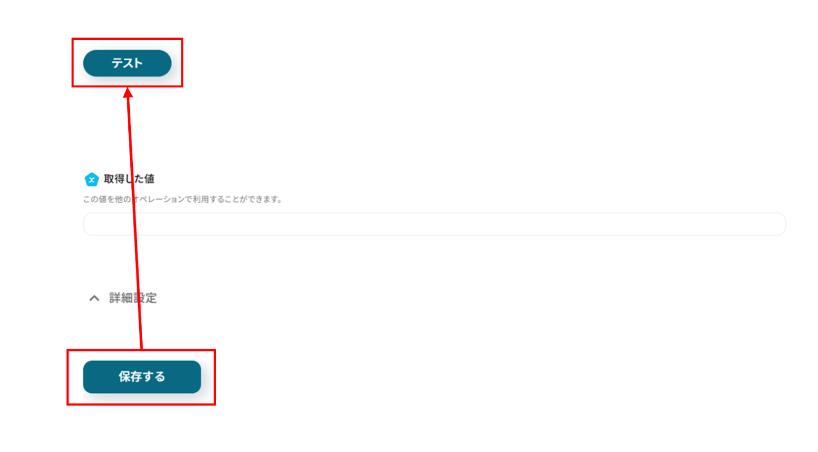 入力が終わったら、下へ進み「テスト」をクリックし、エラーが発生しなければ「保存する」をクリックしましょう。