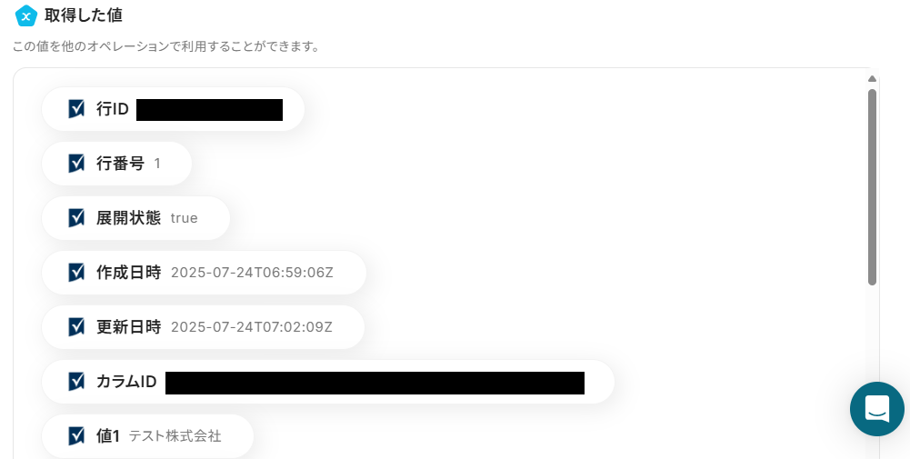 取得したアウトプットは、オペレーション設定時の値としてご利用いただくことができ、フローボットを起動する度に、変動した値となります。詳しくはこちらをご覧ください。