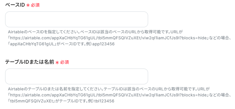 「ベースID」と「テーブルIDまたは名前」を入力しましょう。