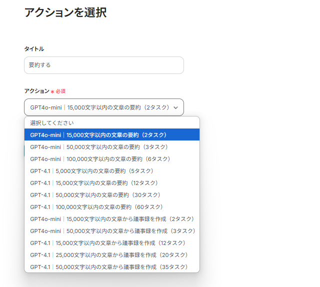 ()内のタスクを消費するので、任意のAIと要約する文章の文字数を選択しましょう。