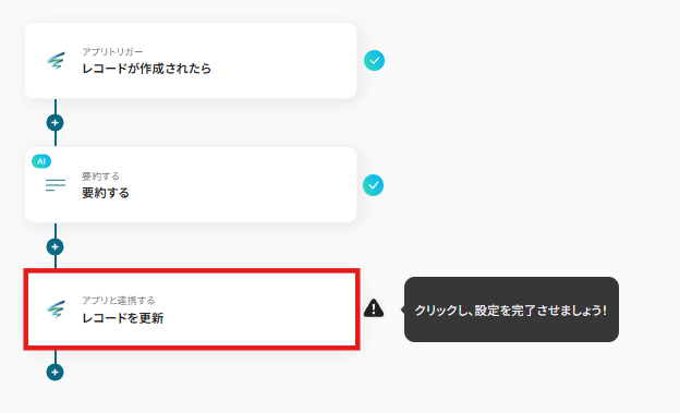 SPIRALで新しいレコードが作成されるたびに、内容を確認し、必要な情報を手作業で要約・更新するのは手間がかかる作業ではないでしょうか。特に多くのレコードを扱う場合、情報の見落としや更新漏れのリスクも伴います。このワークフローを活用すれば、SPIRALでのレコード作成をトリガーに、AI機能が自動で任意の項目を要約し、SPIRALのレコードを更新するため、こうした課題をスムーズに解消できます。