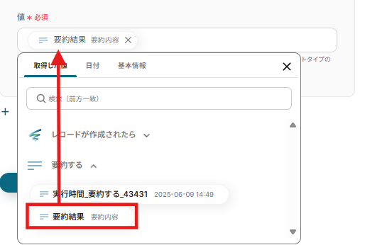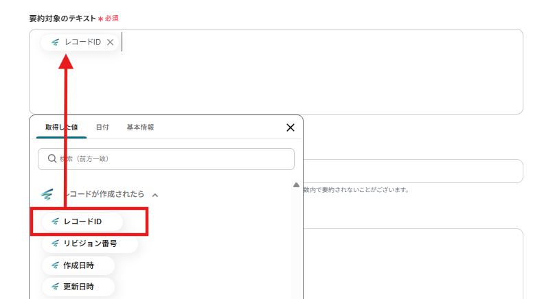 要約対象のテキストには以下のようにSPIRALから取得した値を入力しましょう。