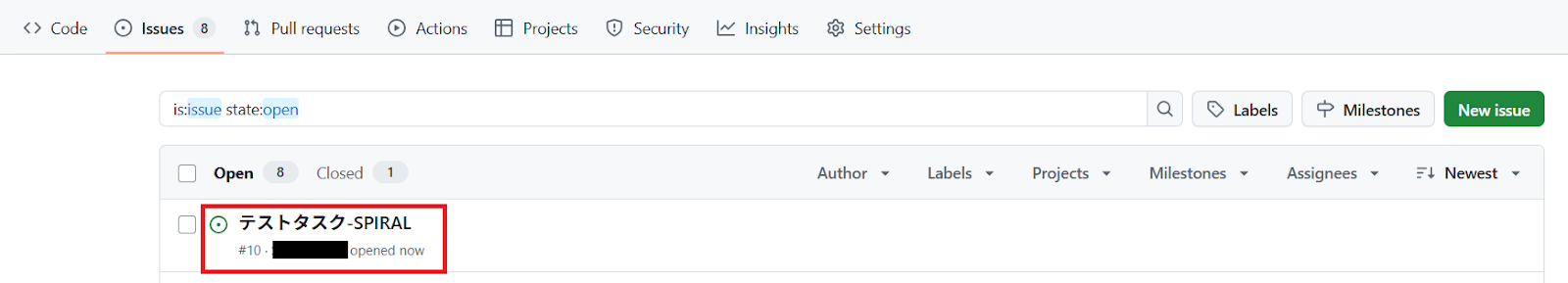 テストが成功すると、GitHubにIssueが追加されるので確認しましょう。