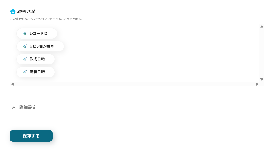 「取得した値」は、以降の設定で利用できます。