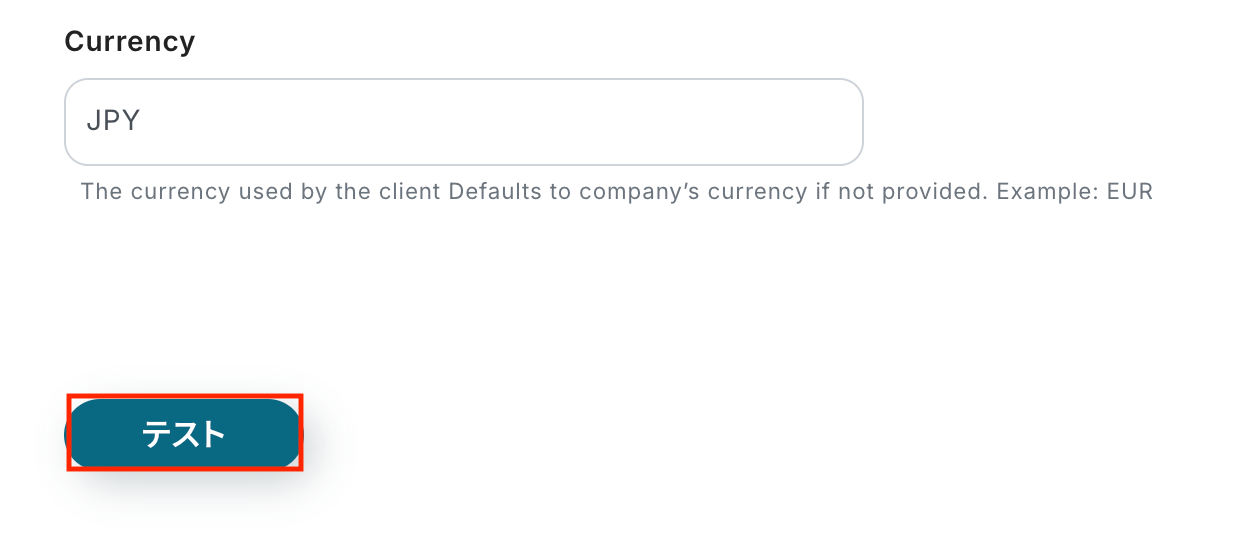 入力が完了したら「テスト」をクリックして、設定した内容でHarvestにクライアントが作成されるか確認しましょう。
