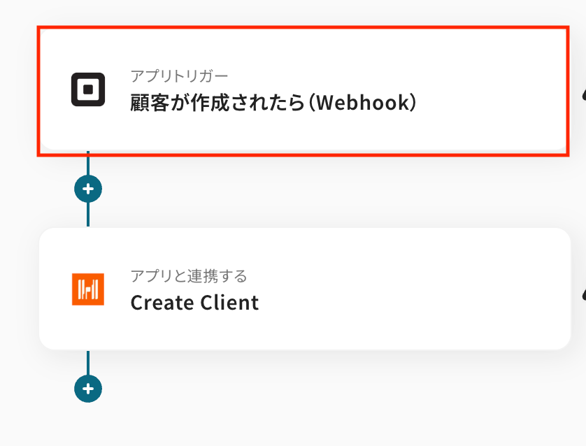 「顧客が作成されたら(Webhook)」をクリックします。