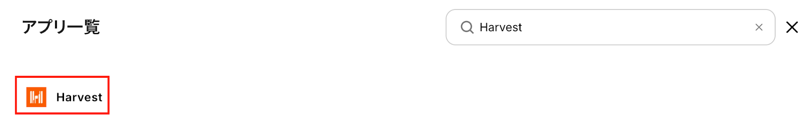 新規接続をクリックしたあと、アプリのメニュー一覧が表示されるのでHarvestと検索し対象アプリをクリックしてください。