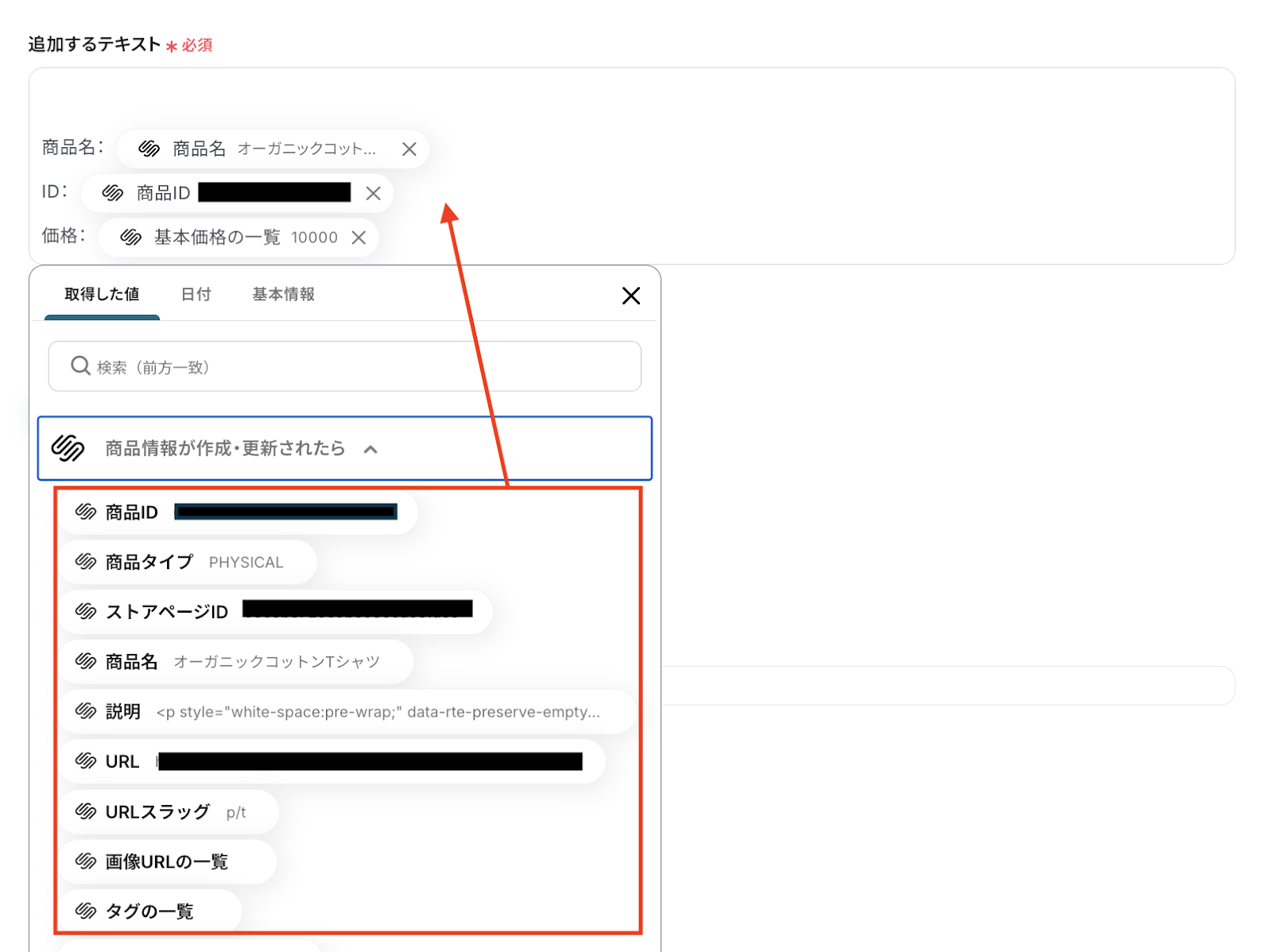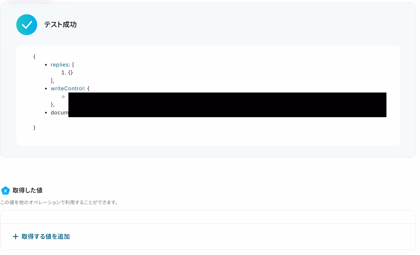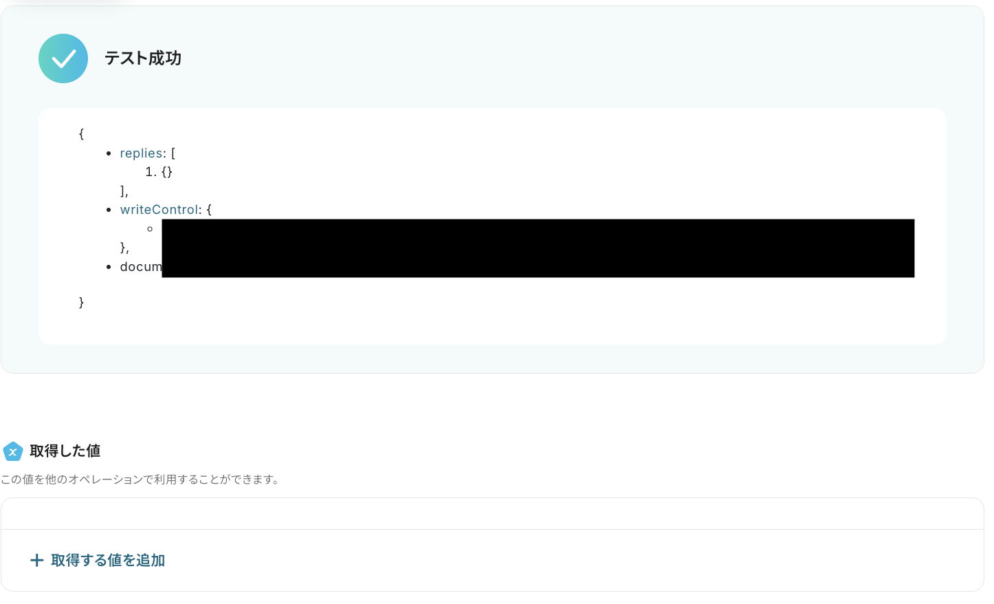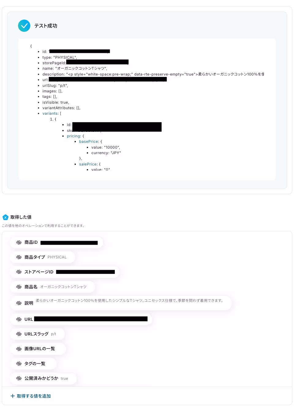 以下の画像の取得した値は、後続のステップで使用可能です。