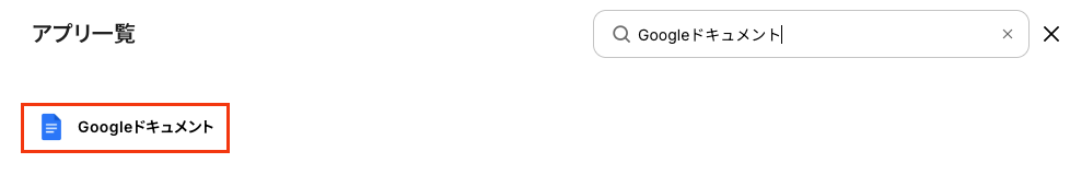 新規接続をクリックしたあと、アプリのメニュー一覧が表示されるのでGoogleドキュメントと検索し、対象アプリをクリックしてください。