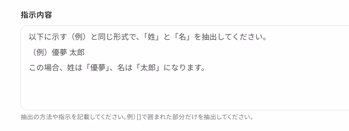 抽出されたデータが望んでいた形とは違う場合、「指示内容」という設定欄をご活用ください。