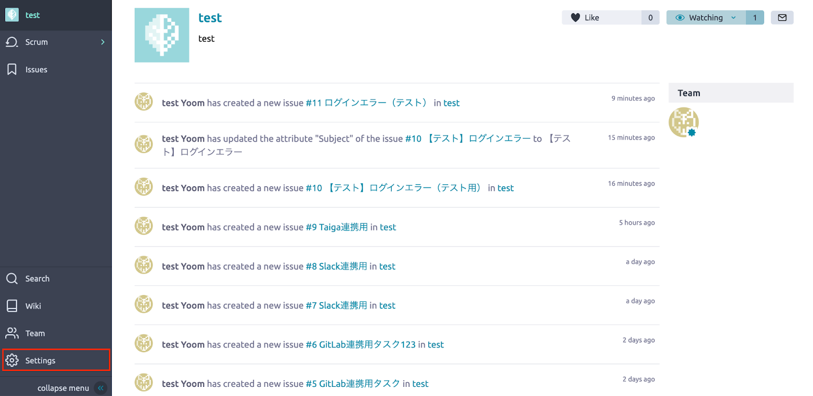 Webhook URLの設定が完了したら、TaigaでIssueを新たに作成しておきましょう。