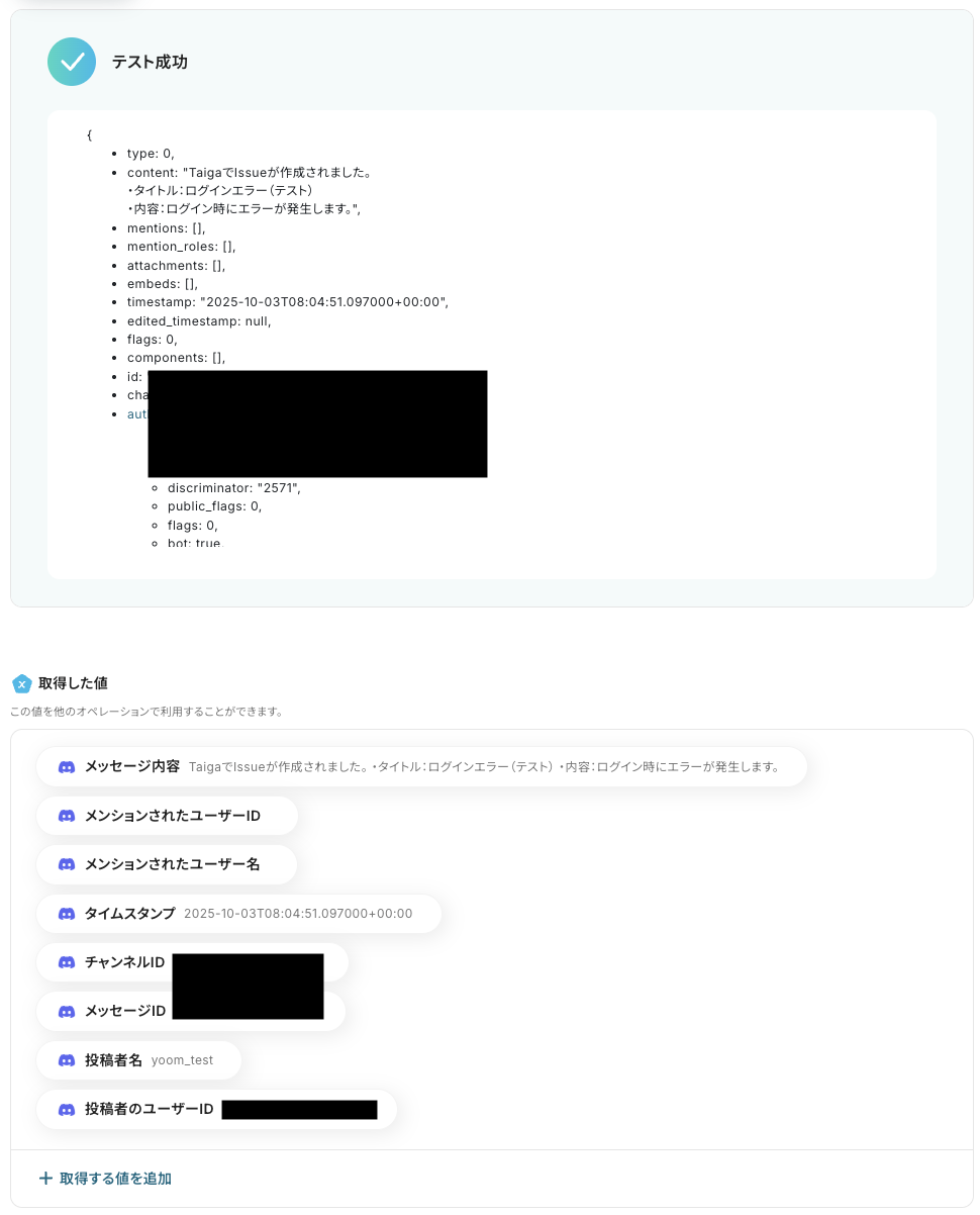 この値を用いて、この後のステップでDiscordに通知することが可能です。