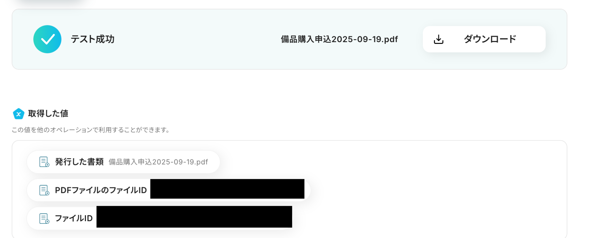 ここで取得した値は、後続のオペレーションで使用します。