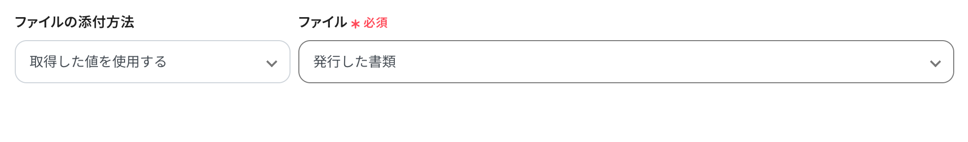 ファイルの添付方法と添付ファイルは、以下のように設定します。