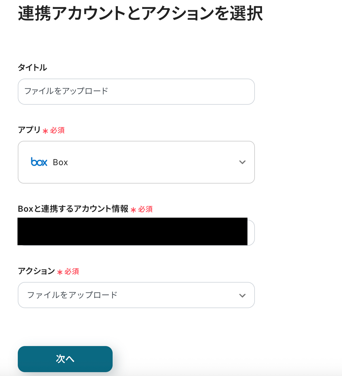 ステップ5:Boxのアクションを設定しよう(ファイルをアップロード)