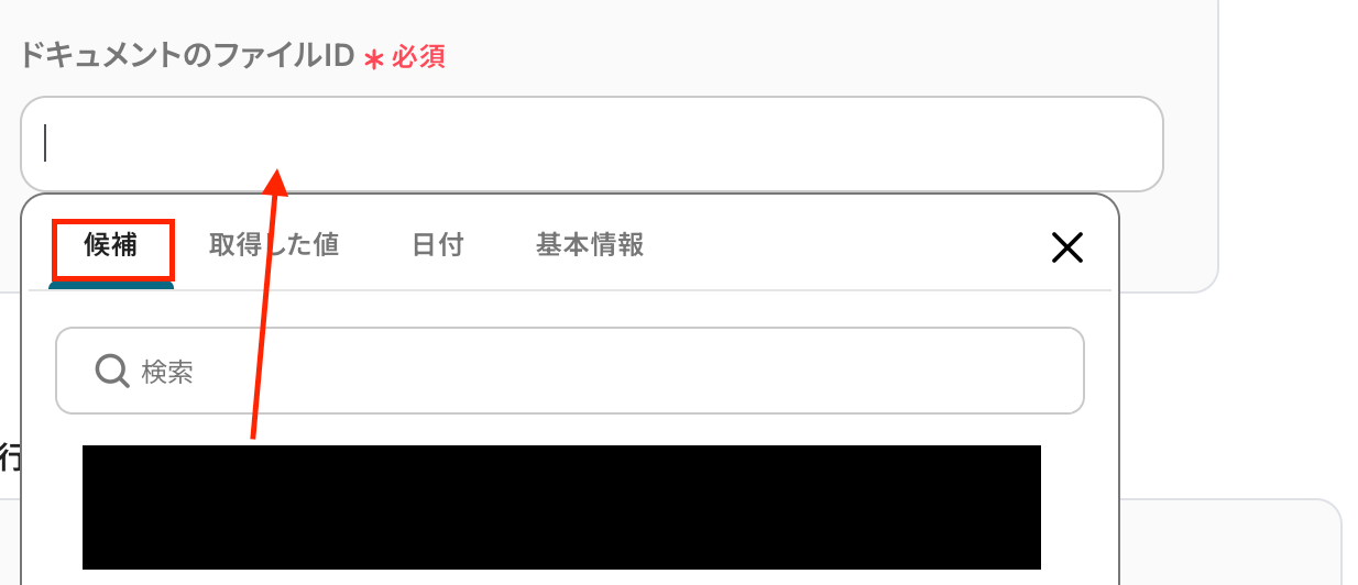 ドキュメントのファイルIDはGoogle ドキュメントのURLの「/d/●●●●」の●部分を入力するか、候補から選択しましょう。
