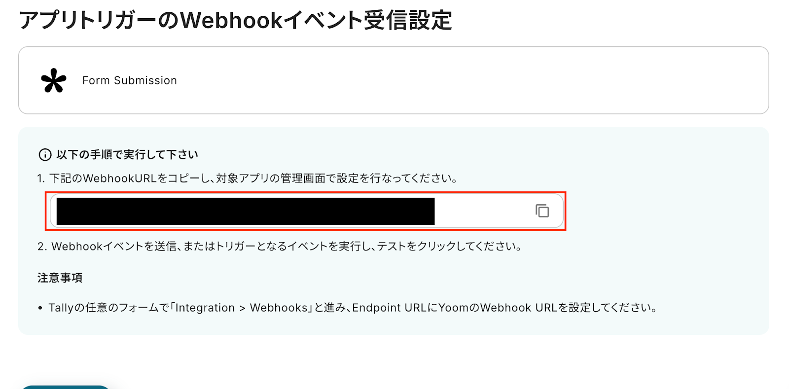 表示されているWebhookURLをコピーし、Tallyの管理画面で設定します。