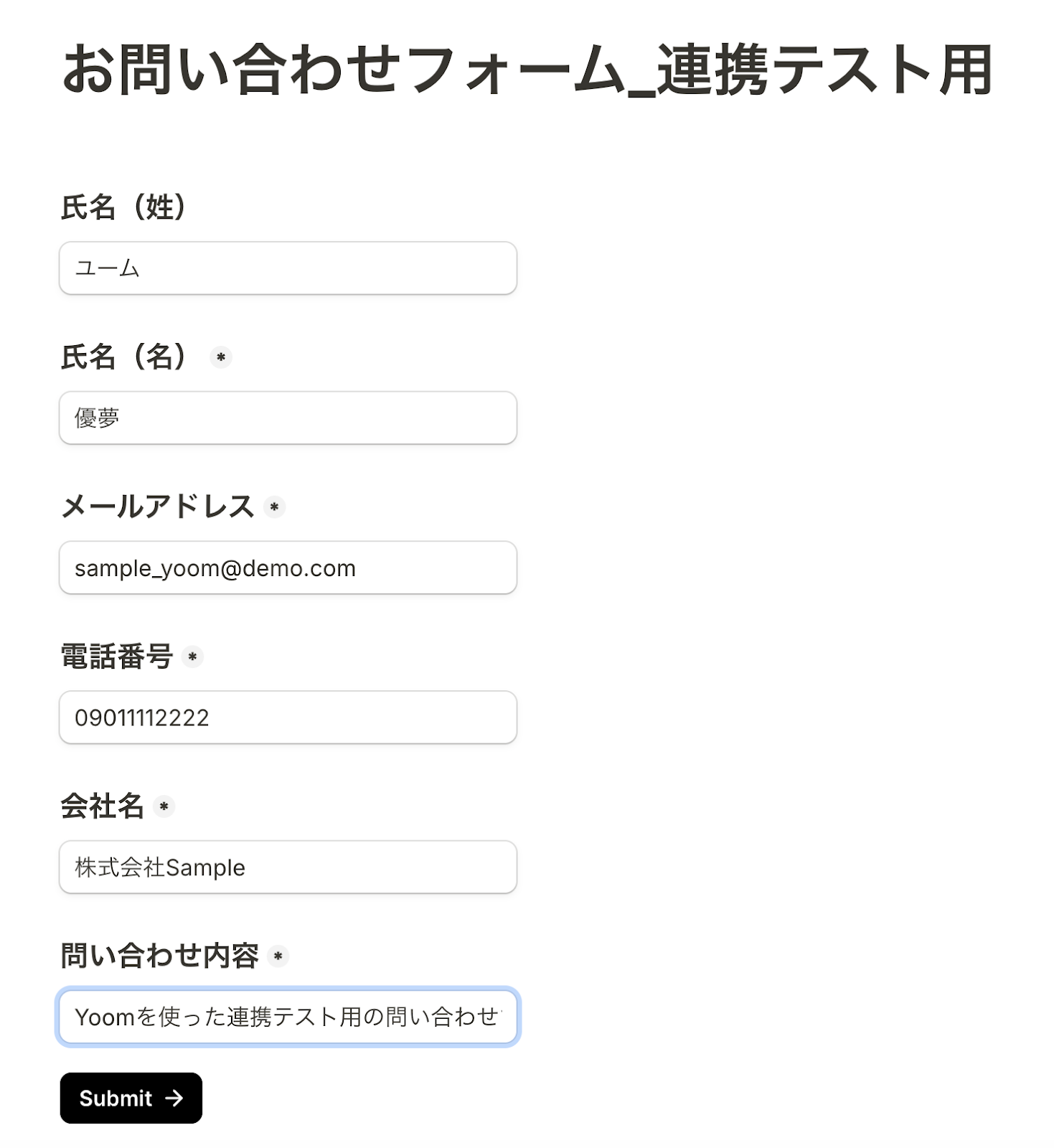 Webhookの設定を行ったフォームに、テスト用に回答を送信してください。