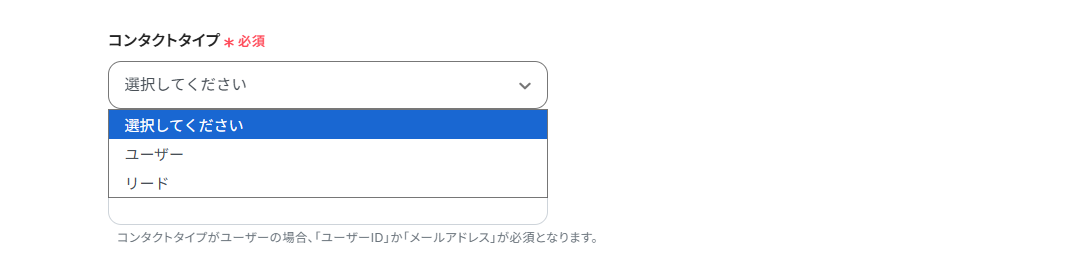 コンタクトタイプは設定欄下の注釈を確認し、プルダウンメニューから「ユーザー」か「リード」を任意で選択してください。