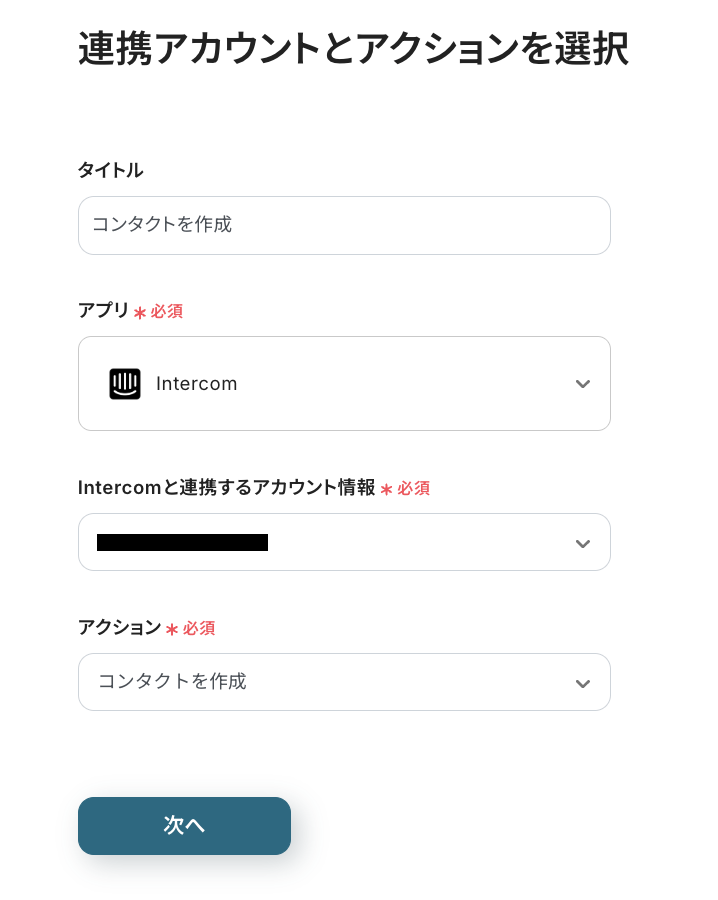 続いて、Tallyのフォームに送信された回答情報を基に、Intercomのコンタクトを作成する設定を行います。