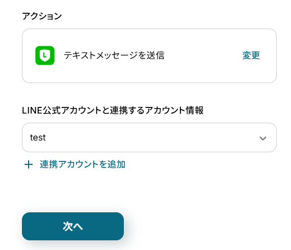 続いて、連携アカウントとアクションを選択に進みます。