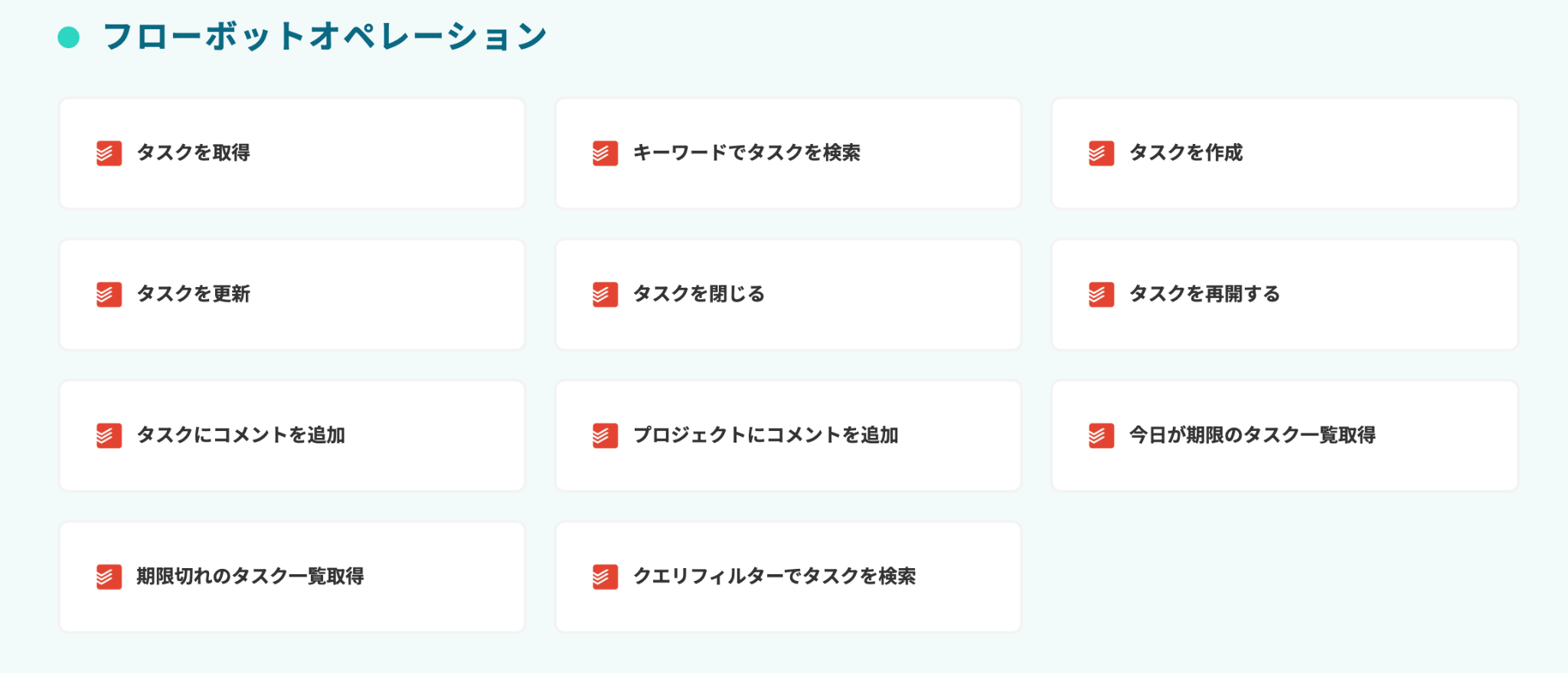 Todoistでは、下記のようなフローボットオペレーションがあります。