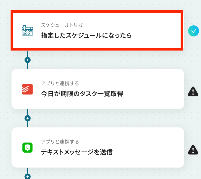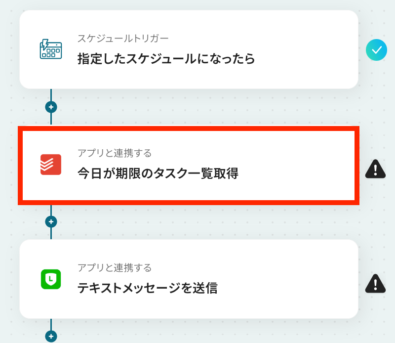 それではここから代表的な例として、毎日、今日が期限のタスクをTodoistから取得しLINE公式アカウントに通知するフローを解説していきます!