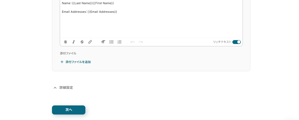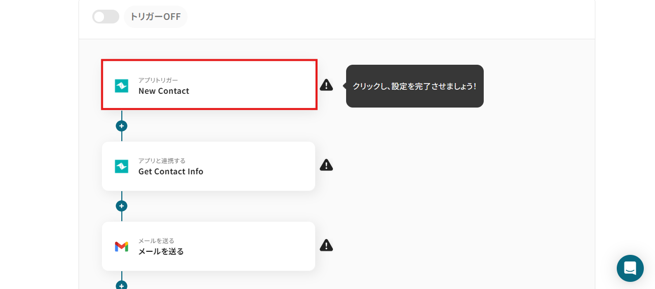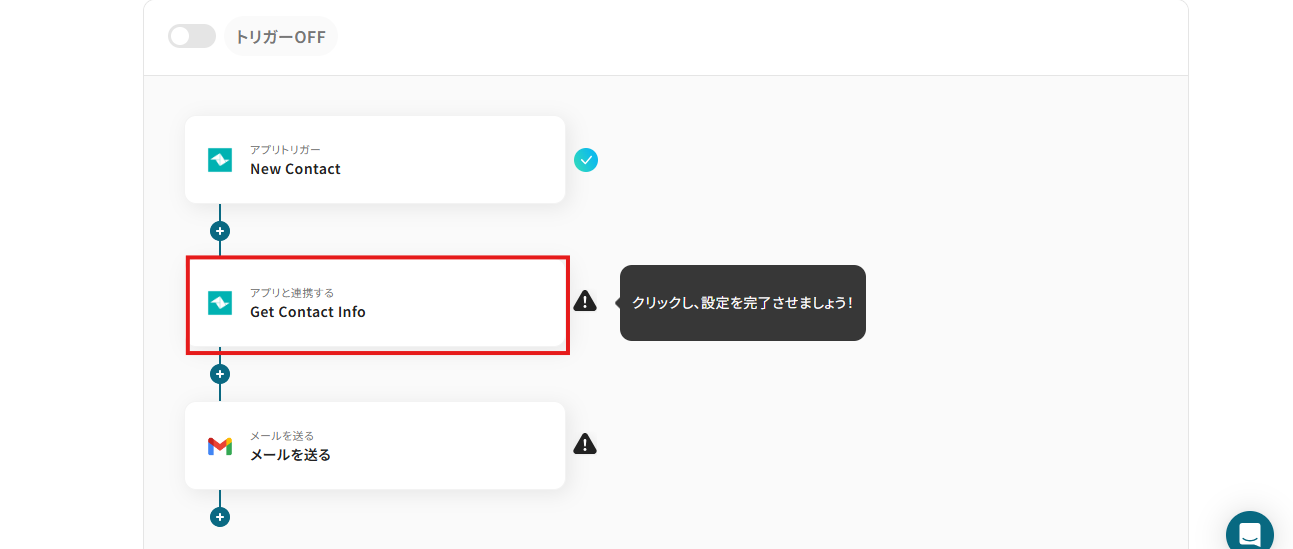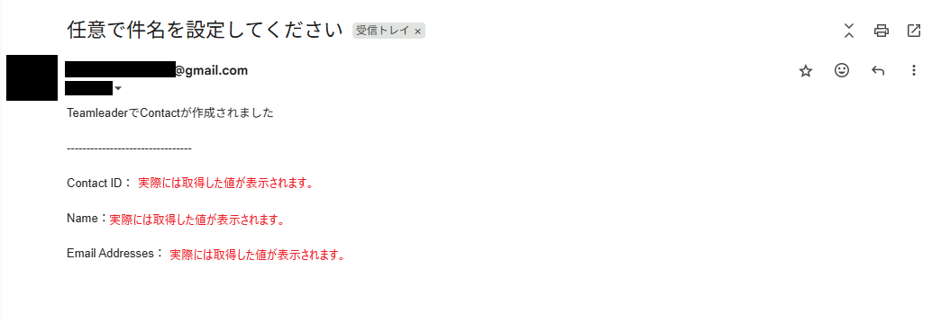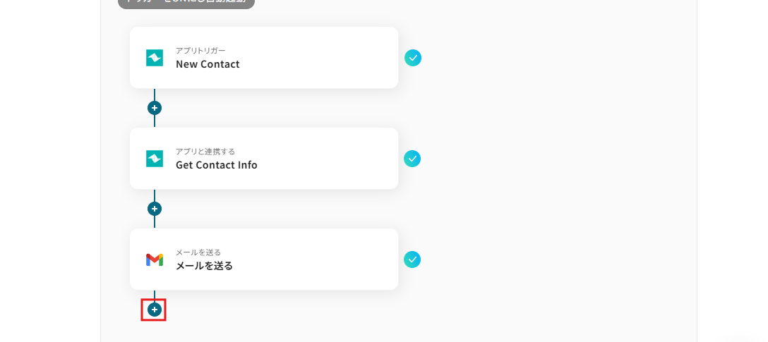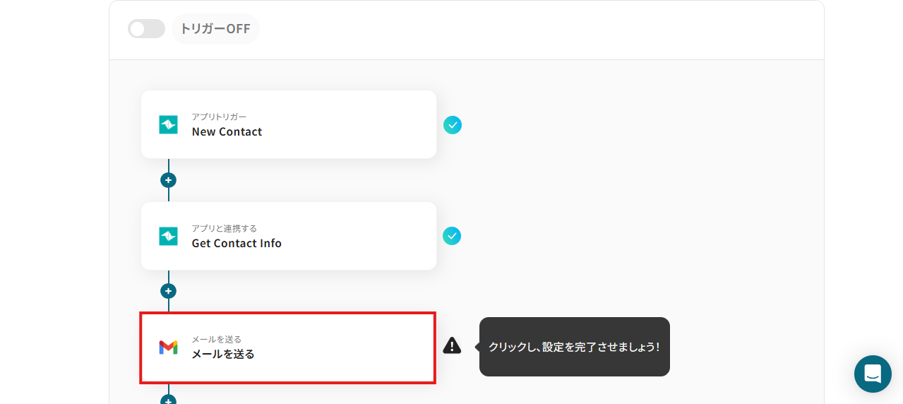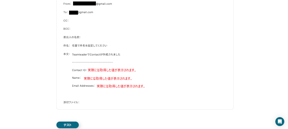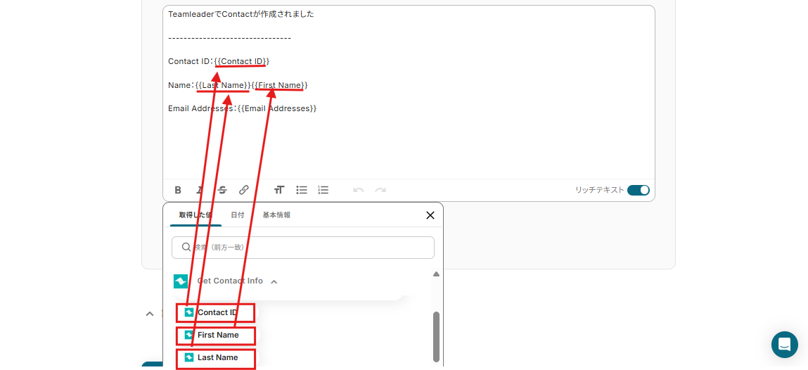 続いて、Teamleaderで取得したコンタクトの情報をGmailに引用し自動でメールを送る設定を行います。