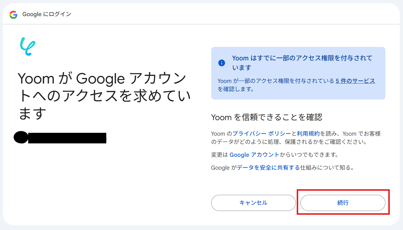 今回連携したいアカウントを選択し、YoomとGmailの連携を進めましょう。