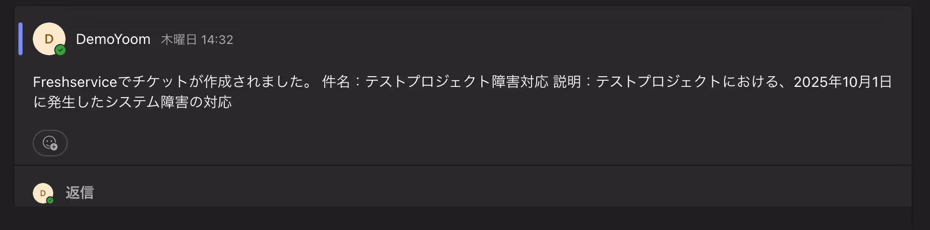 この仕組みにより、メッセージを確認してから手動でチケットを作成する手間がなくなり、対応漏れや転記ミスを防ぎながら初動対応を迅速化できます。