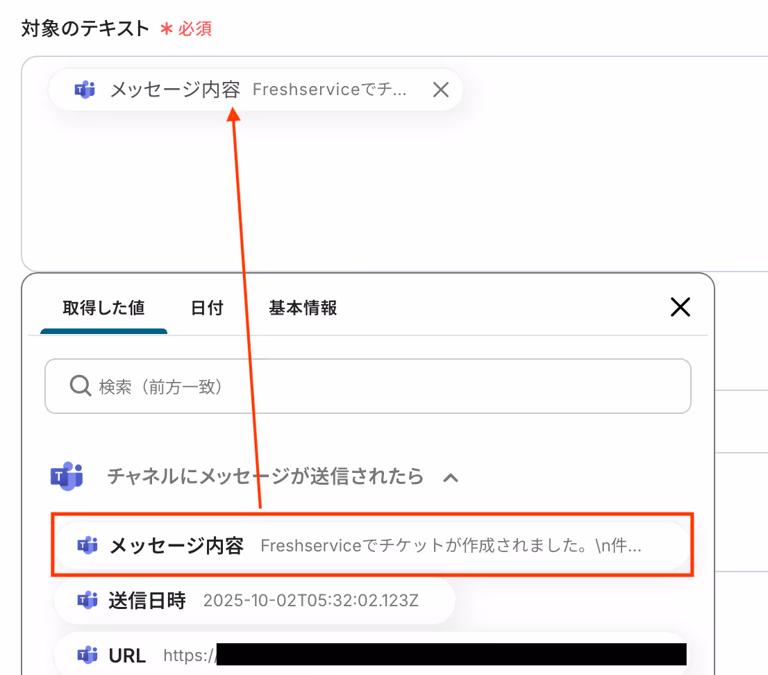次に、Microsoft Teamsのメッセージ内容から必要な情報を取り出します。