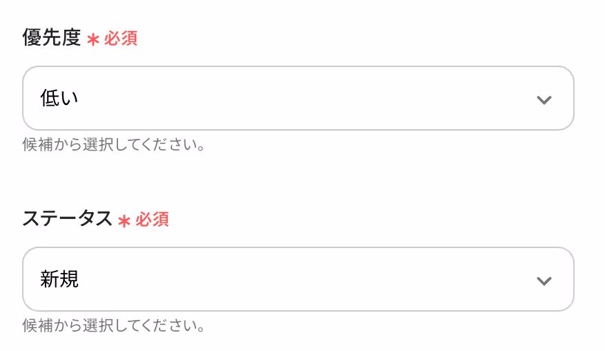 優先度とステータスを候補から選びます。