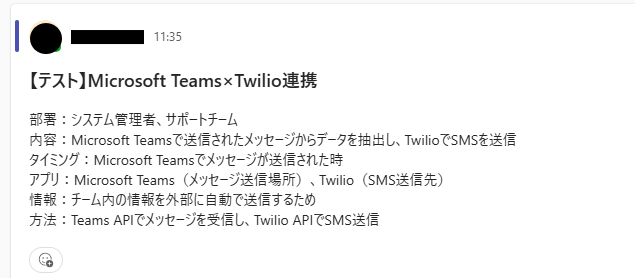 Microsoft Teamsの特定のチャネルに重要なメッセージが投稿された際、その内容を関係者に迅速にSMSで通知したい、というケースはありませんか。