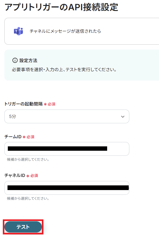 ステップ3:Microsoft Teamsの「チャネルにメッセージが送信されたら」の設定