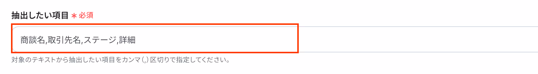 抽出したい項目には添付画像のように、抽出したい項目名を入力しましょう。
