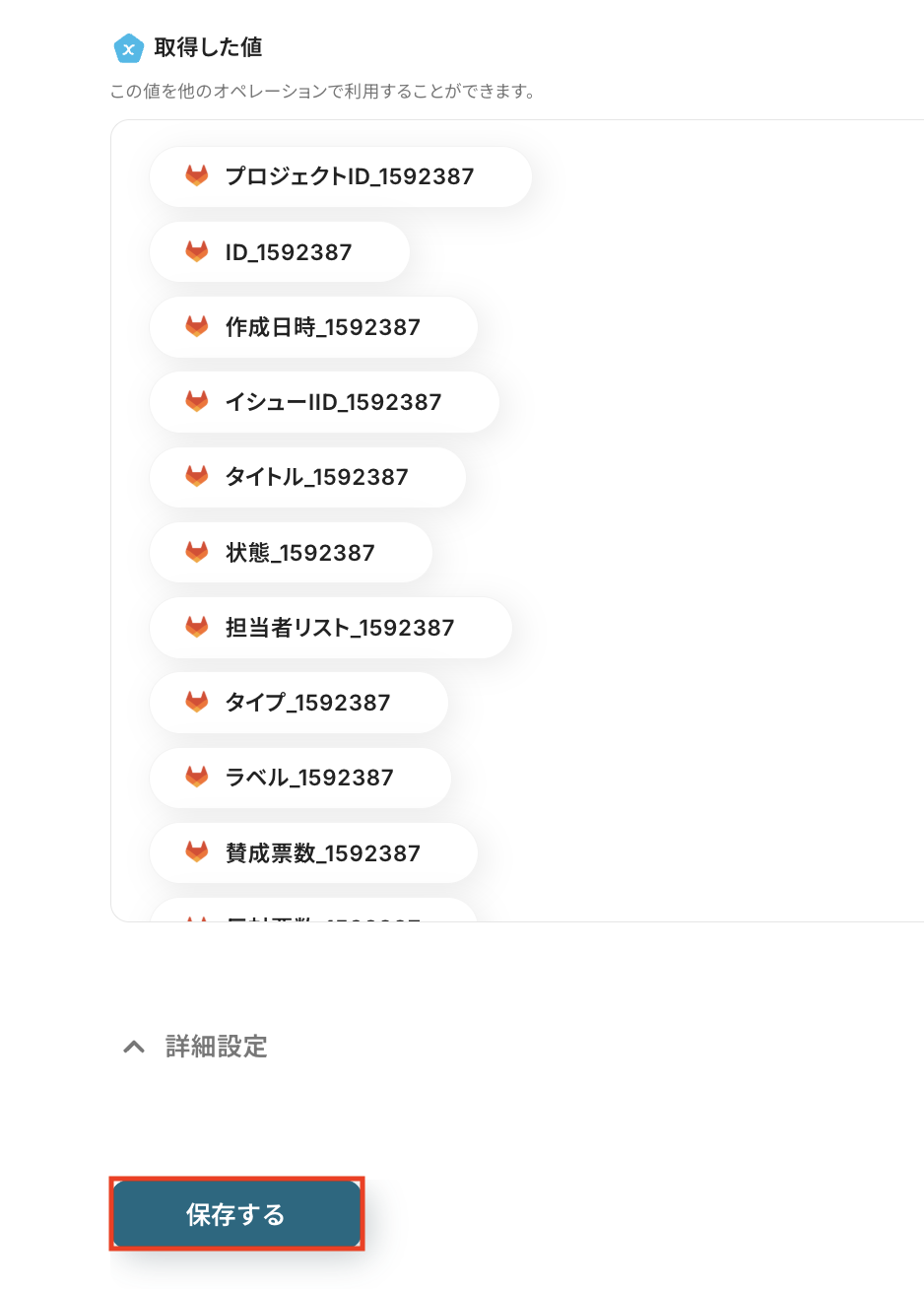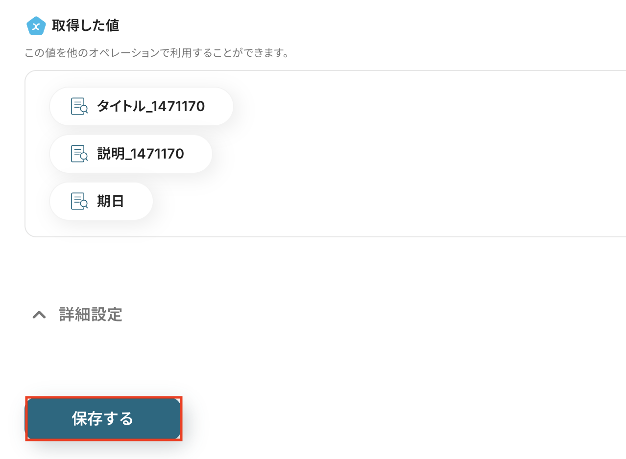 以下の画像の取得した値は後続のステップで利用可能です。