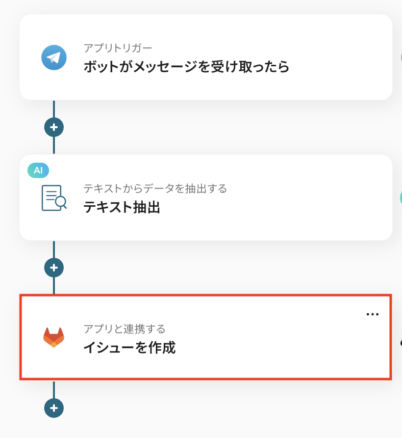 ただ、Telegram→GitLabといった連携を想定した場合、自動的にメッセージ内容を反映することはできず、重要なメッセージに基づくタスク作成を行うには手動での転記作業が必要となります。