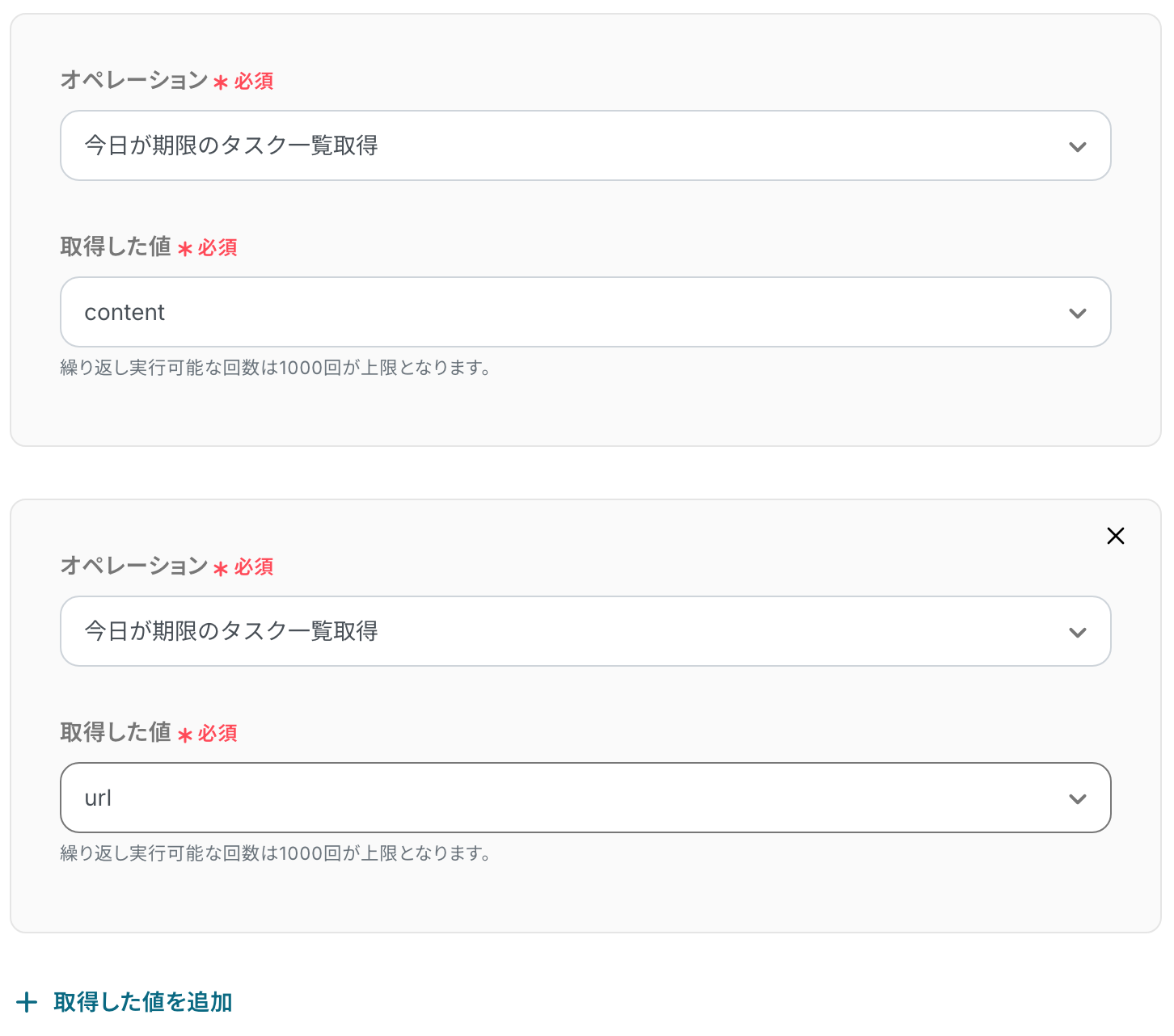 ※繰り返し処理の詳しい設定方法については、こちら をご参照ください。
