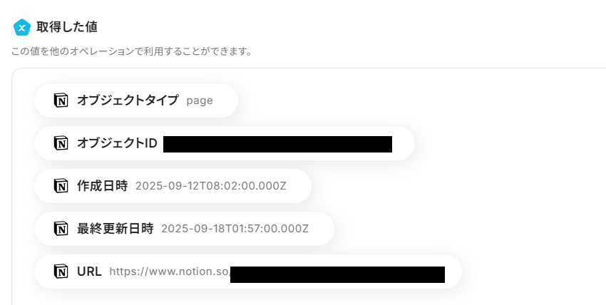 「取得した値」として、Notionの内容が以下のように表示されていれば成功です!