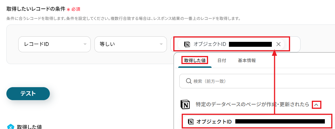 Yoomでは、テストを実行した際に取得できる情報のことを「取得した値」と定義しています。
