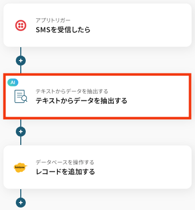 この自動化により、SMS経由での問い合わせや見込み顧客からの連絡を即座にkintoneに反映し、営業担当者が迅速に対応を開始できる体制を構築 でき、機会損失を防ぎます。 この連携は、AIや正規表現による抽出処理や、AIによる文章生成を含むデータ加工処理を活用するパターンです。