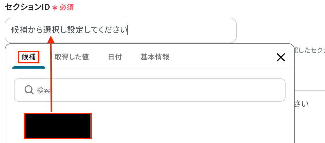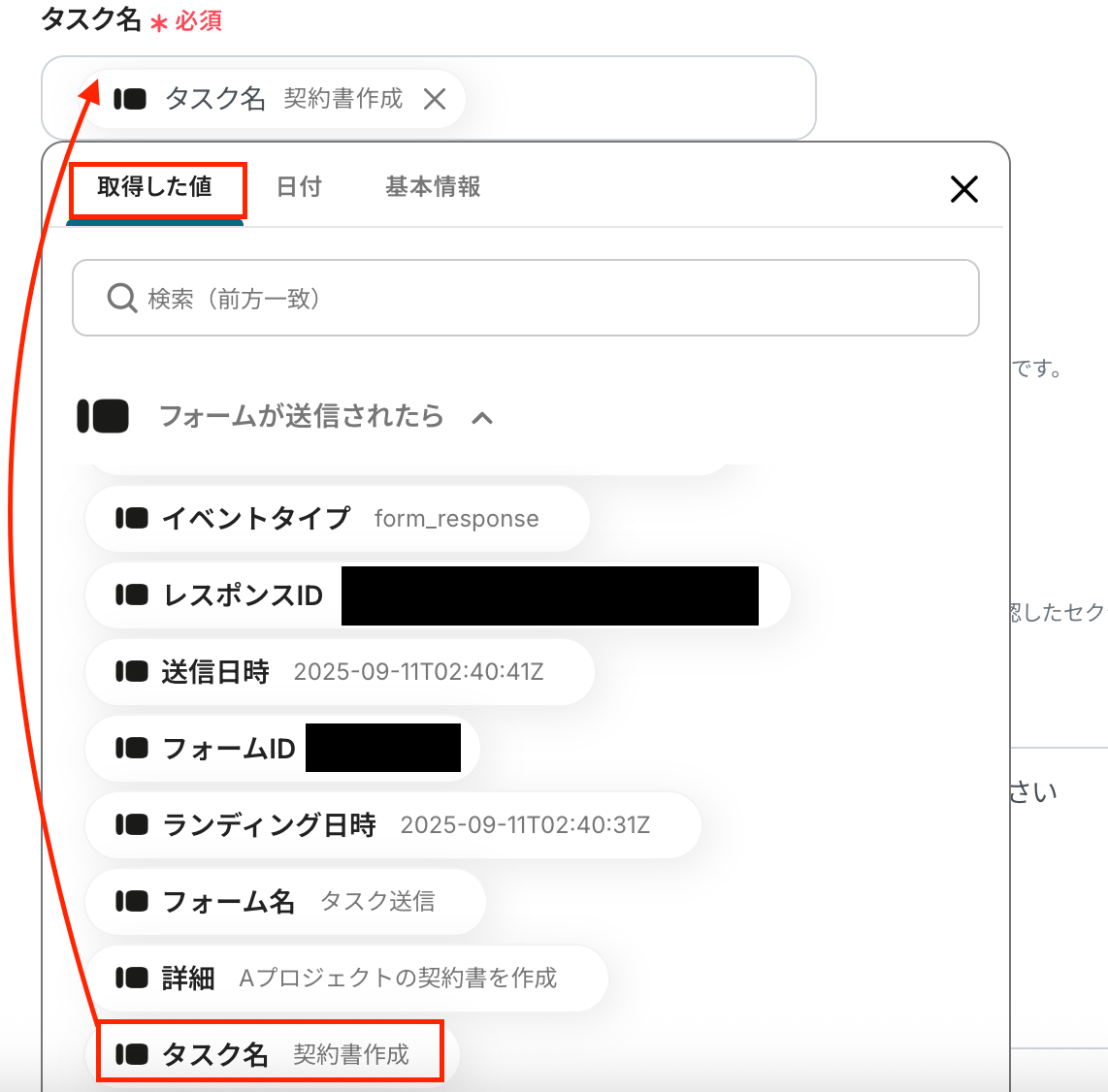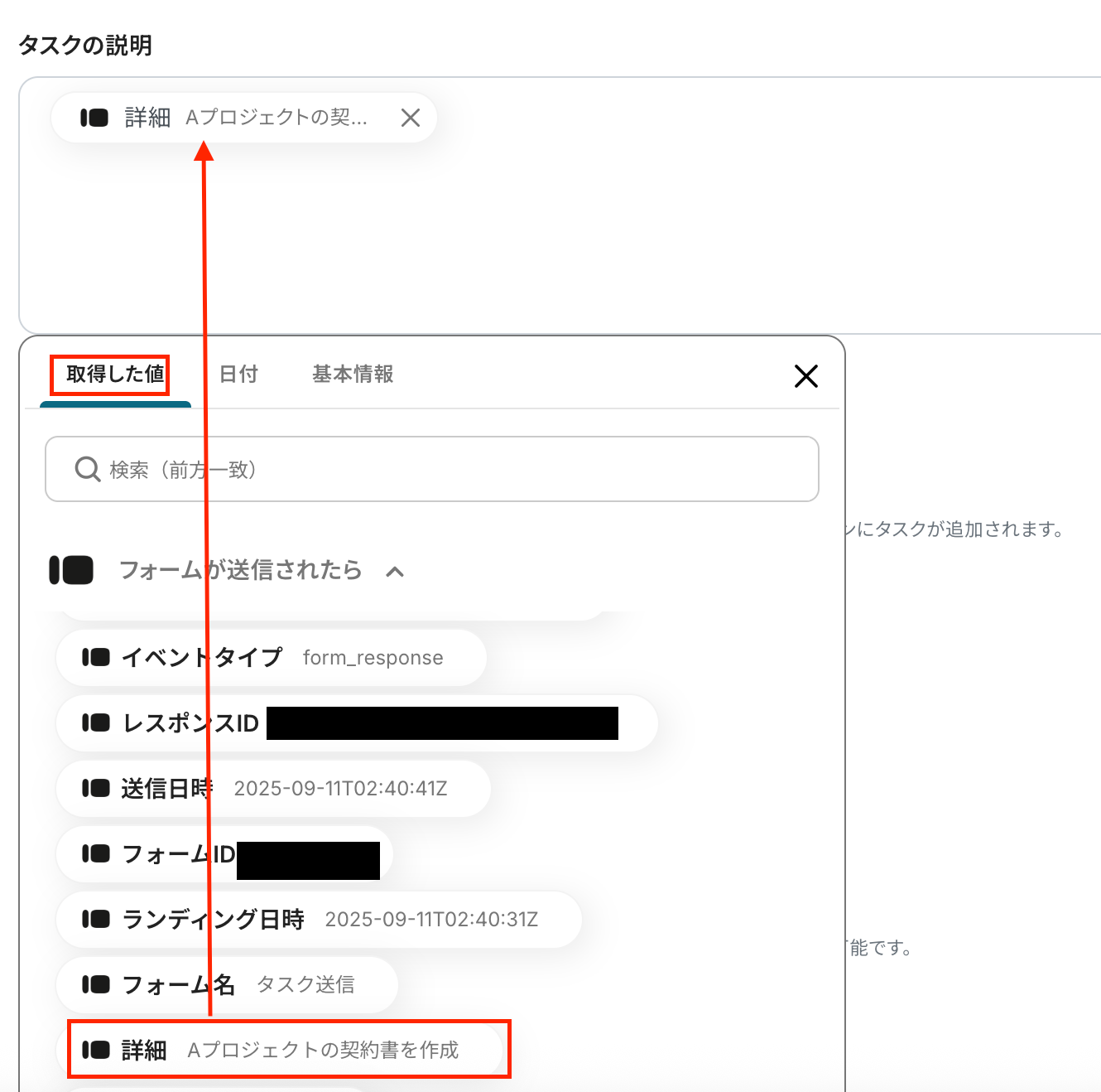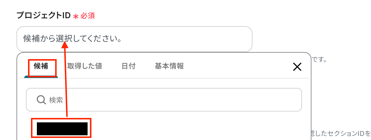 Asanaにタスクを追加する設定で、ここで取得した値を活用します。
