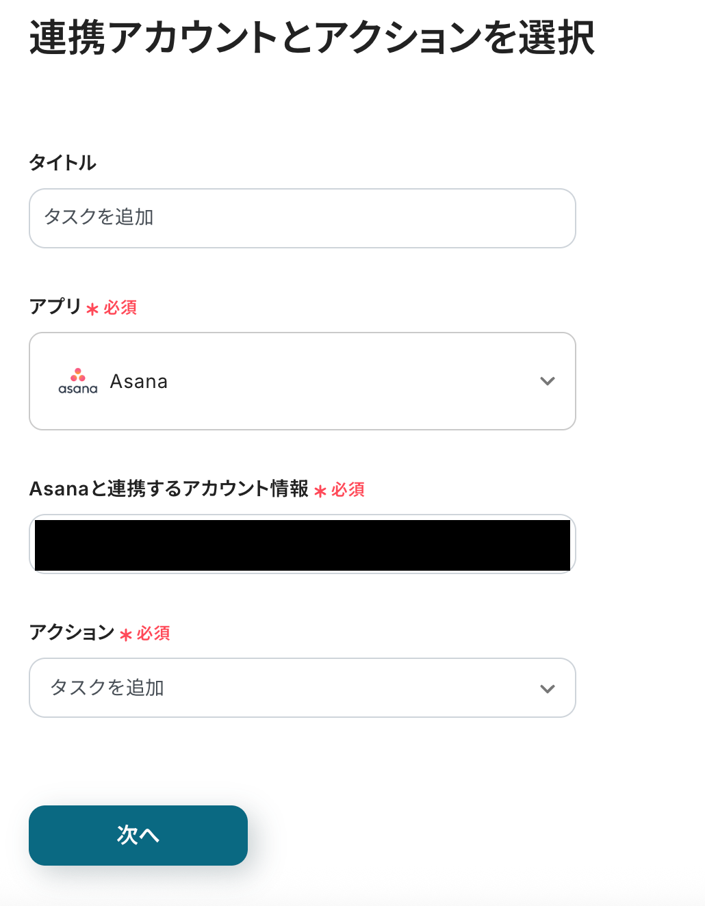 ステップ4:Asanaのアクションを設定しよう(タスクを追加)