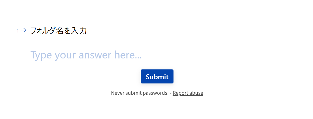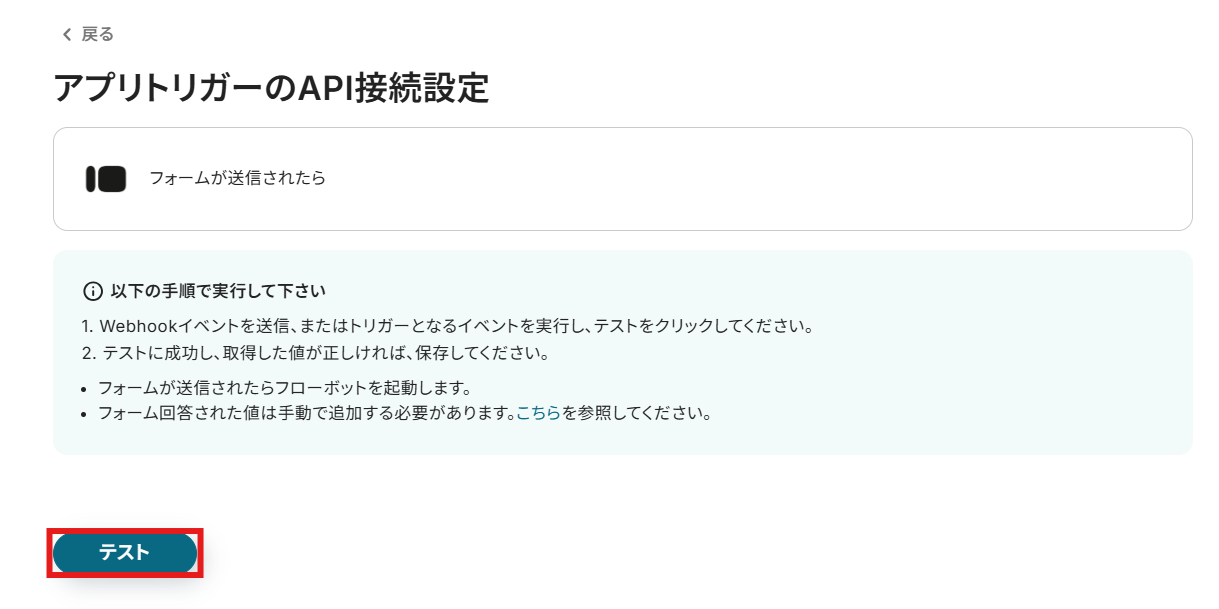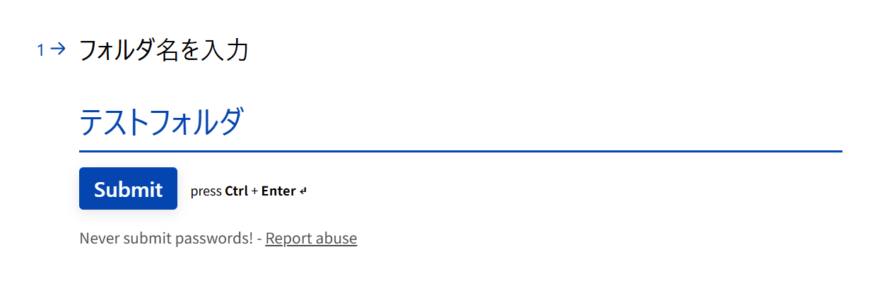 次の画面のテストでフォームの回答結果を取得するため、先ほど作成したフォームに回答を送信してください。