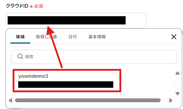 Yoomの画面に戻り、下記画面に以下の設定を行ってください。